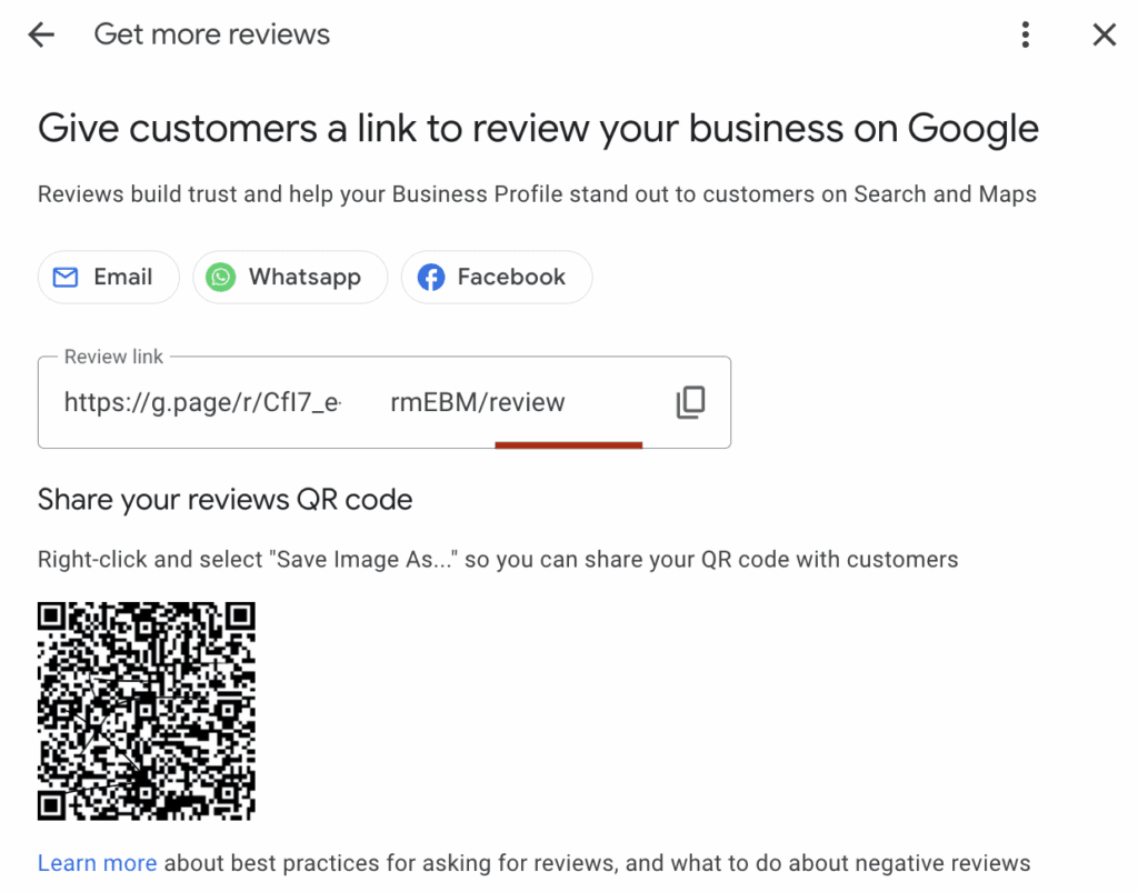 If you’re a service-based business or physical store, your setup happens through your Google Business Profile instead: you can share your review link and encourage customers to leave feedback after their visit.